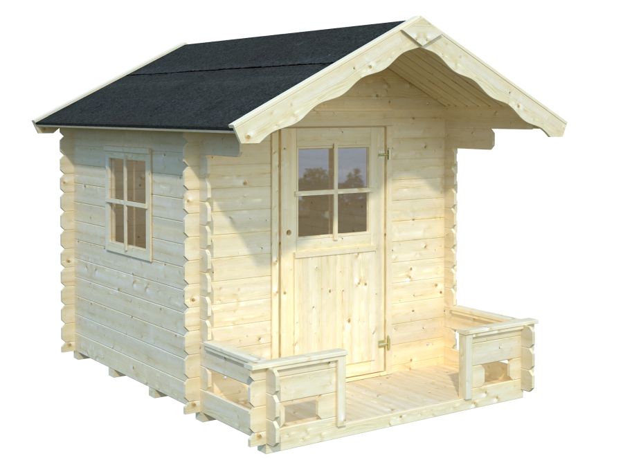 The playhouse comes complete with wooden floors, Plexiglas windows, balcony, Swiss-chalet style roof and veranda with a 5-year guarantee which meets all European standards to guarantee its quality and safety.