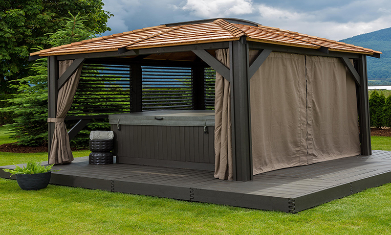 Formed and cut in Canada, the Mount Alta 2 Cedar roof is a modern-looking, long-lasting feature of your backyard structure.