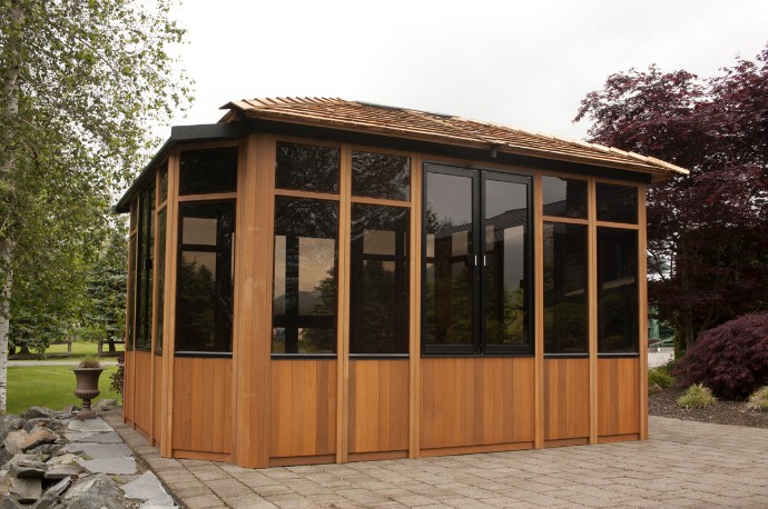 That starts right from the wood we use, Only the finest Canadian western red cedar - kiln dried to stabilize and strengthen the wood - is used in our gazebos. Experience in spa cabinetry has taught us that western red cedar, with its natural resistance to rot and decay, is the ideal material for building enduring structures that will hold their own in even the most extreme weather conditions.