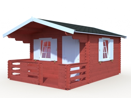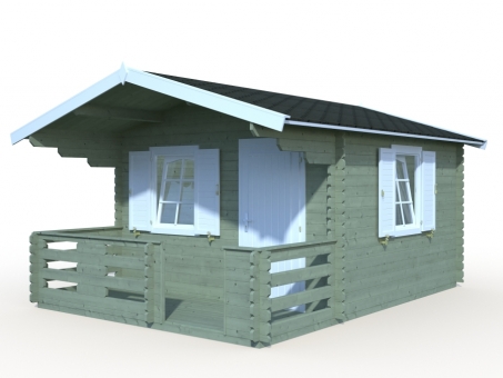 The apex roof of the Dallas Log Cabin features an overhang which covers the veranda beautifully, providing shade from sun and showers. Built from 19mm tongue and groove, this ensures a strong and reliable canopy. The delightful veranda area is ideal for outdoor seating, with treated terrace boards for a hardwearing finish. From the veranda, you enter the cabin through a single door, which is fitted with a cylinder lock. For increased strength and improved resistance to adverse reactions to extreme temperatures, such as warping or cracking, the door frames are laminated in construction. To ensure good insulation the tilt and turn windows and doors have rubber seals and silicone. Inside you are aware of generous space and natural light pouring in from the windows on two aspects. Single glazed with a top opening function, aiding ventilation, the windows also benefit from shutters on the outside and discrete windows gutters to prevent water seepage and damage. These shutters can be used to secure your log cabin when not in use and offer an attractive feature when pinned back. The cabin is supplied untreated with a five-year guarantee. 5-year manufacturer's guarantee • Impressive veranda and feature overhang roof • High quality 34mm Nordic Spruce interlocking logs • 19mm tongue and groove cladding roof and floor with treated terrace boards and treated foundation joists • Single entrance door with cylinder lock and a laminated door finish providing enhanced resistance to cracking and extreme temperatures • 2 single glazed tilt and turn opening windows with attractive shutters • Rubber seals and silicone for good insulation • Low door sill, covered with stainless steel • *** Please note that NO ROOF COVERING is included, please select from the accessory options below ***
