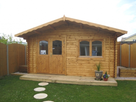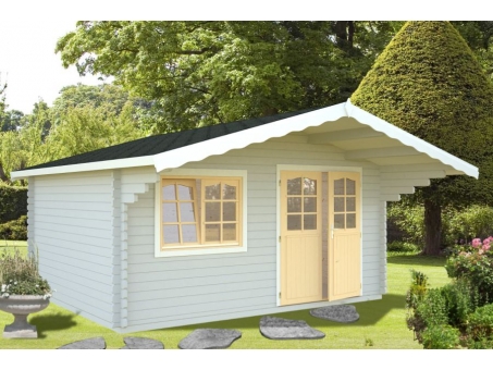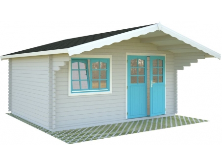 The apex roof design with the large overhang with a pretty scalloped edge, provides shelter from sun and showers, whilst the 19mm tongue and groove cladding ensures a robust canopy. The strong flooring is 19mm tongue and groove cladding, well-known for its durability and weather resistance, is supported by treated foundation joists which provides a hardwearing and long-lasting surface for this popular outdoor building. The stylish double-glazed entrance doors allow light and ventilation into the spacious interior, together with additional sources from the tilt and turn opening window. The window features a discrete metal gutter designed to prevent water seepage and damage. For increased strength and improved resistance to adverse reactions to extreme temperatures, such as warping or cracking, the door frames are laminated in construction. To ensure good insulation the window and doors have rubber seals and silicone. The low door sill ensures you have good access with a stainless-steel cover to protect wood from damage in this high wear area. Door frames include 3D hinges, adjustable in x, y and z axis. The cabin is supplied untreated with a five-year guarantee. • 5-year manufacturer's guarantee • High quality 44mm Nordic Spruce interlocking logs • 19mm tongue and groove cladding floor and roof with treated foundation joists • Double glazed entrance doors with a cylinder lock and a laminated door finish providing enhanced resistance to cracking and extreme temperatures • Tilt and turn double glazed window providing light and ventilation • Metal gutter on windows prevents water seepage and damage • Rubber seals and silicone for good insulation • Low door sill, covered with stainless steel • Door frames include 3D hinges, adjustable in the x, y and z axis.