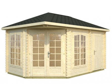 The Ohio corner log cabin is the perfect size to fit into corners of gardens where space is an issue. Designed to be long lasting, these corner log cabins have an incredible build. First of all, the timber used to manufacture the log cabins is a Nordic spruce, an expensive timber, the price reflecting its extremely tough and long-lasting qualities. The build consists of the wall and roof/floor panels made from a tough tongue and groove build, giving these corner log cabins a weatherproof shell meaning you can furnish the cabin with peace of mind. The base has added floor joists that are pressure treated which means the floor never touches the soil layer which causes base rot. Lighting inside the wall cabin is no issue thanks to the huge single glazed, real glass windows. Light flows in illuminating the interior for safe use and when ventilation is required, the windows open very easily allowing fresh air in. The double doors on the front of these corner log cabins are made from a solid timber, glazed for added attractiveness and uses a cylinder lock to keep securely shut, giving you peace of mind especially at night. The log cabin is delivered un-treated meaning some preservative needs to be applied to the exterior to give a solid resistance to damage from weathering. Assembly is straight forward and with a few pairs of hands, will not take up the entire day. The assembly kit that is supplied with delivery has everything needed for a fast delivery and the instruction manual means building your corner log cabins is extremely straightforward.