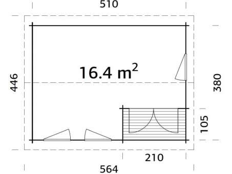 The Oregon 2 is a traditionally designed Log Cabin with cylinder locking double doors and covered terrace area which can be positioned on either side according to your preference. The walls are 44mm tongue and groove construction and 19mm tongue and groove floor and roof with option of felt or shingles covering. All windows are double glazed and operate on a tilt and turn opening mechanism. The double doors have a low threshold door sill with stainless steel protective capping and a laminated frame. The cabin is supplied unfinished and can be stained or painted in any colour to suit. It has a manufacturer’s 5-year guarantee.