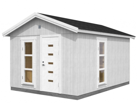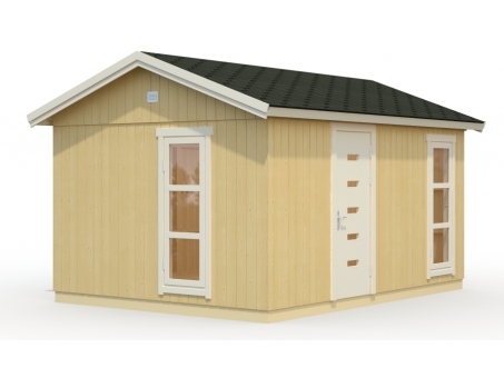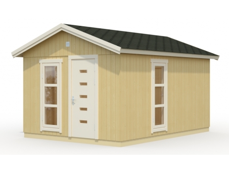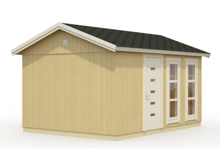 New for 2018, this chic and modern Nordic style building breaks the mould of the traditional looking log cabins. There are several remarkable things about the Turku Nordic cabin. For a start, there is the ease of construction: Turku’s pre-fabricated Quick Fit wall elements permit assembly in a few hours only, but we can quote for on-site construction if needed. The design details and thought that's gone into making this sizeable Scandinavian-style shed durable, well-insulated and, above all, enviable. The windows and front door are double-glazed helping to keep warmth in and draughts out. And the roof and floor are made from 19mm dense timber, also ensuring great insulation. And then there's the flexibility, allowing you to tailor the cabin as you want it. You can choose which side you position the windows, for instance, and which type of roof finish you want. You can choose to construct the cabin yourself or ask us to do it for you. And finally, there's the aesthetic. Add a barbecue pit, some Nordic or glamping-style furniture, and some garden lights or candles, and you could well be in the coolest of Nordic TV or film sets - just without the inconvenience of the Scandi noir crime and detectives. All our timber buildings are covered by the Valkea’s Log Cabins 5-year warranty The Turku is designed to be built very easily with minimum effort while still utilising quality materials such as Nordic Spruce and boasting impressive specifications. These include wall elements that are pre-manufactured and feature wind protection plastic, foundation joists that are treated for longevity, and the roof and floor which are made up from tongue & groove boards. From the outside you'll see that hardwearing shingles are used instead of cheaper felt. There is also fine sawn cladding and tilt & turn windows. The environment in the cabin is very pleasant due to double glazing with rubber seals and silicone, so this is a very attractive place in which to spend time and can be used for a variety of activities throughout the year. The Turku Nordic House is a contemporary-style Log Cabin with an apex roof. The walls are constructed with 18mm fine sawn cladding which has internal wind protection plastic. The floor is 19mm tongue and groove and the roof is 16mm tongue and groove with the option of felt or shingles covering. The single door has a cylinder lock, wooden sill and a laminated door frame. The twin opening windows feature double glazing with rubber seals throughout. Internal wall cladding and additional window can be supplied as optional extras. The cabin is supplied unfinished and can be stained or painted in any colour to suit. It has a manufacturer’s 5-year guarantee.